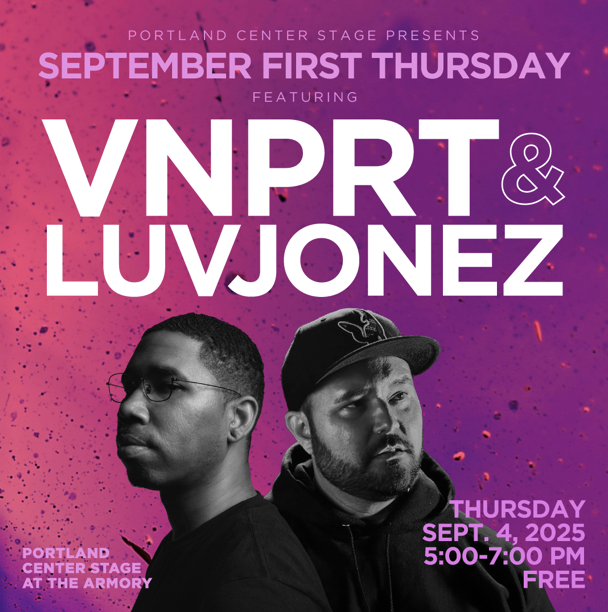 Details: Celebrate First Thursday with live sets from Portland-based producers and DJs VNPRT and LUVJONEZ. Their performances will blend original productions with instrumental hip hop, jazz, R&B, house, and more.