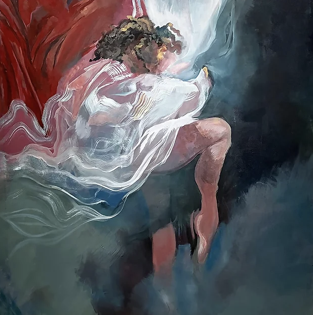 Image: “Dearly” by artist Cira Mesubed-Eastern Oregon University (acrylic on canvas 2024), courtesy of Blackfish Gallery